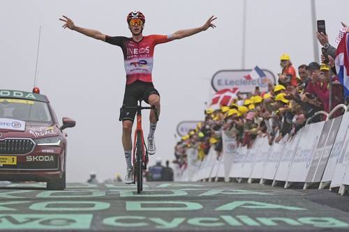 Arensman, del equipo Ineos-Grenadiers, logró la victoria más importante de su carrera. Después de cruzar la línea de meta en la densa niebla que envolvía la estación de esquí de Superbagnères, se tumbó exhausto en el suelo con la cabeza entre las manos.