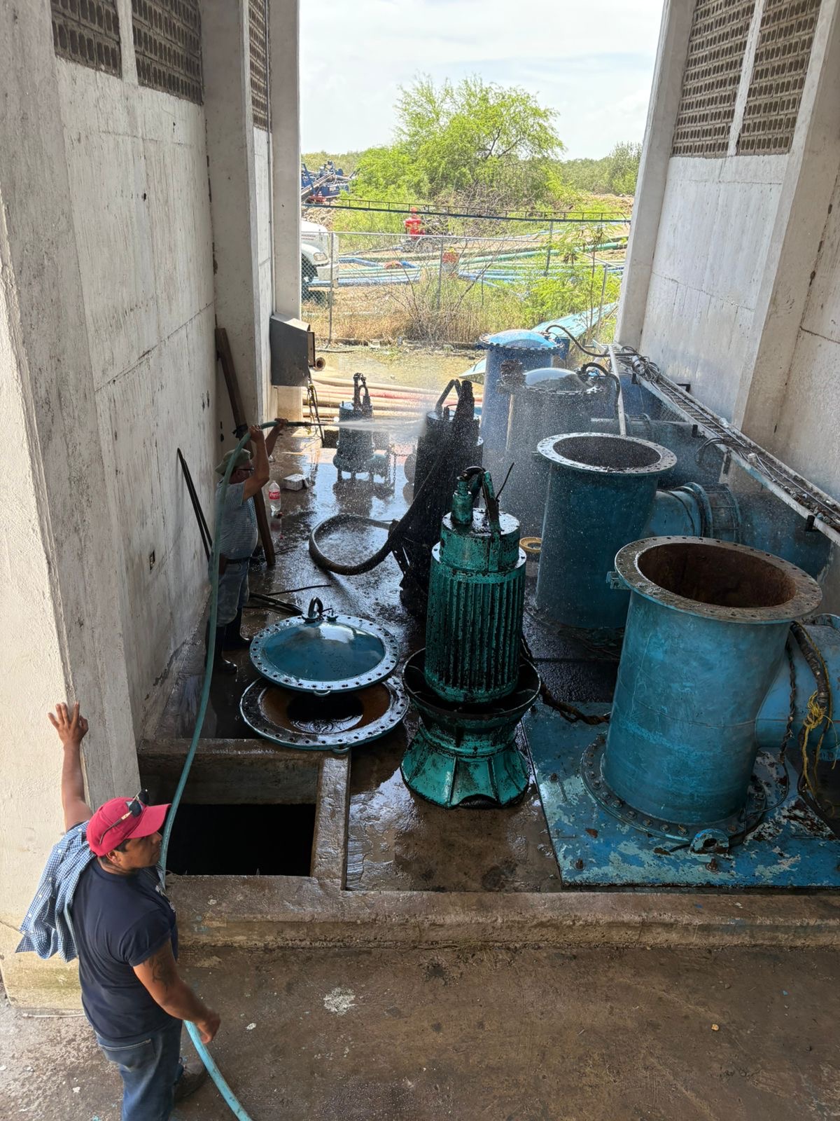 Durante la inspección en fuentes de abastecimiento, pudo detectarse que sólo funcionaban dos de cuatro bombas con variaciones de voltaje, por lo que fueron extraídas paralimpieza y posterior reinstalación.