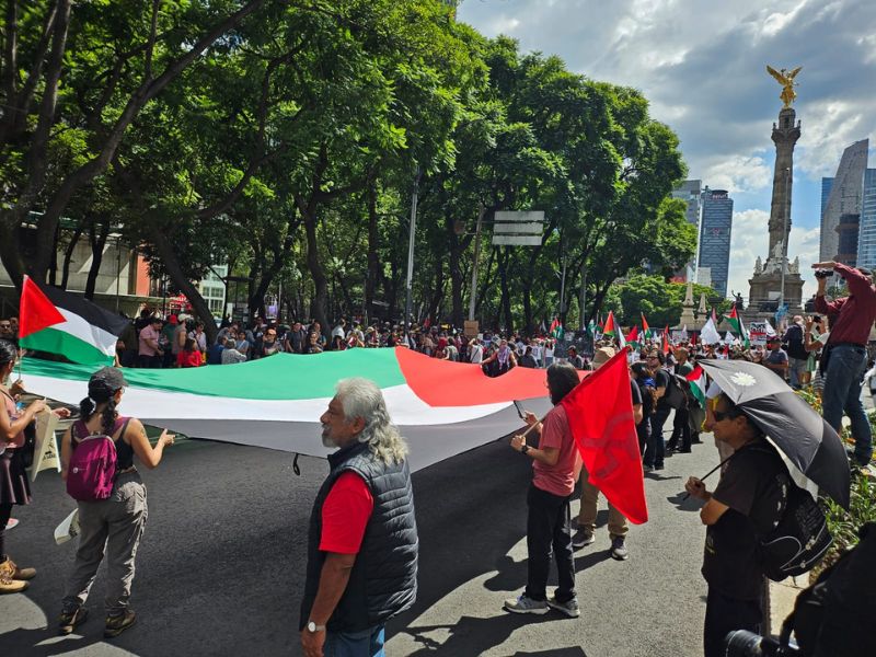 La manifestación, que partió del Ángel de la Independencia y se dirigió hacia la Cámara de Diputados, se convocó a las 15:00 hrs, reunió a miles de personas de diversos sectores sociales para expresar su solidaridad con el pueblo palestino.
