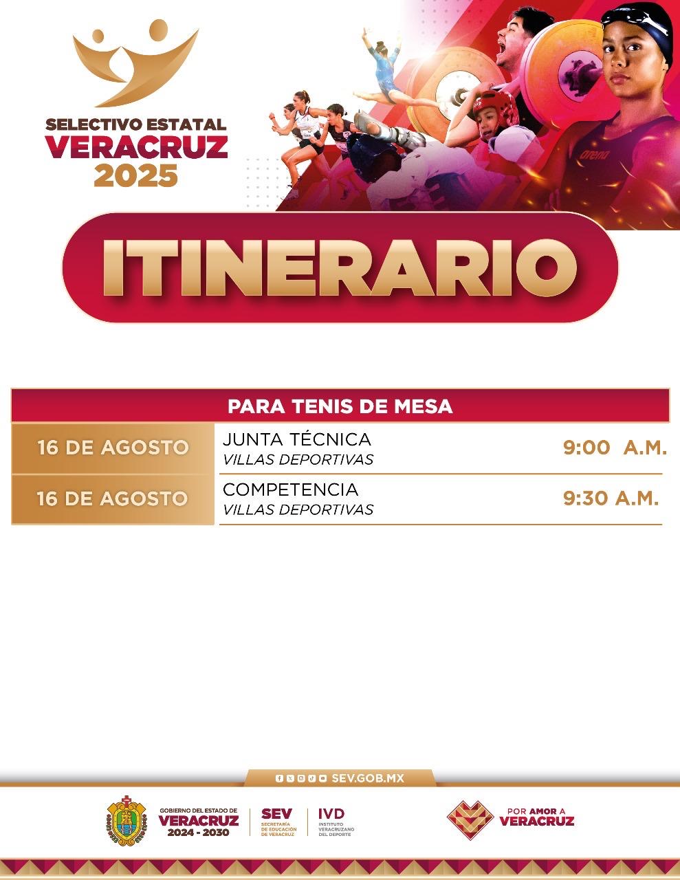 Boca del Río, Ver.- Este viernes 15 y sábado 16 de agosto, más de un centenar de paratletas competirán en la eliminatoria estatal rumbo a la Paralimpiada Nacional Conade 2025, en las disciplinas de Para Natación, Para Powerlifting, Para Atletismo y Para Tenis de Mesa.