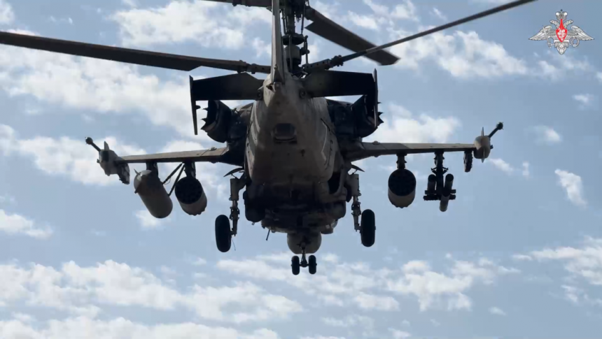 La tripulación de un helicóptero de ataque Ka-52M de las Fuerzas Armadas rusas destruyó vehículos blindados y soldados del régimen de Kiev, comunicó el Ministerio de Defensa de Rusia, publicando el video de la operación.