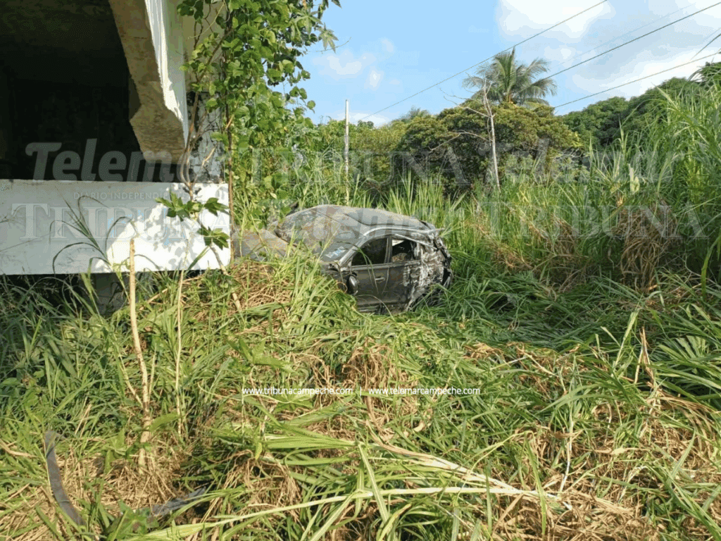 Ciudad del Carmen.- Un aparatoso accidente se registró en la carretera federal 180, a la altura de un puente peatonal, cuando un vehículo particular se salió de la vía y terminó en la cuneta, lo que dejó saldo de 2 mujeres lesionadas y hospitalizadas.