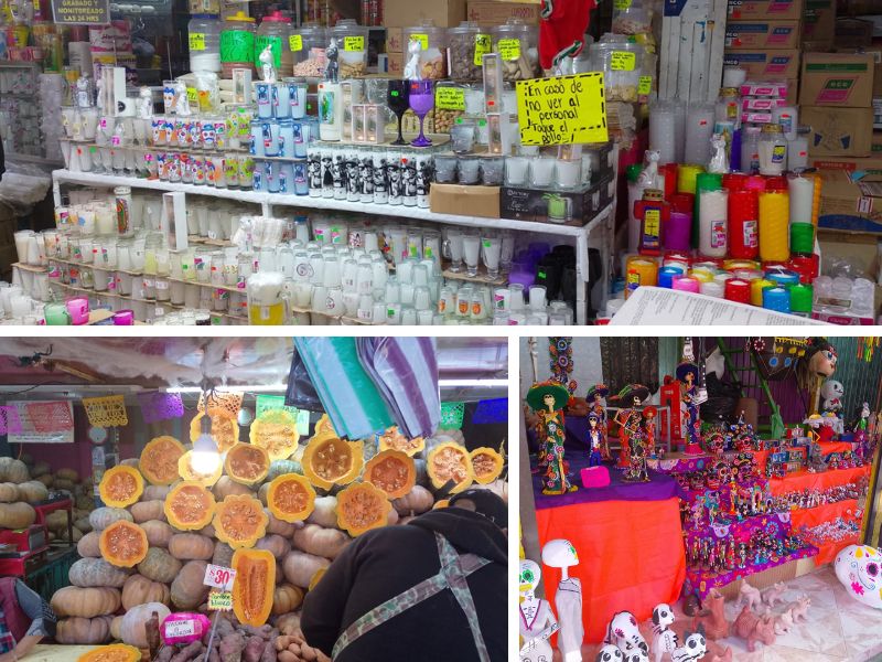 En el mercado se venden flores de cempasúchil, calabaza, pan de muerto, calaveritas y otros productos para la ofrenda.
