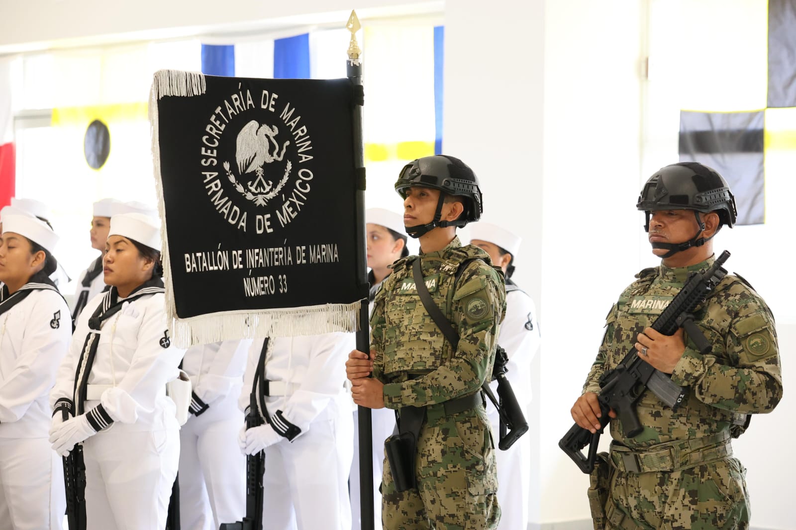 A nombre del almirante Raymundo Pedro Morales Ángeles, secretario de Marina y alto mando de la Armada de México, el vicealmirante Héctor Rodríguez reprodujo el mensaje oficial, resaltando que a lo largo de más de dos siglos la Armada de México se ha destacado por ser una institución que es sinónimo de valentía, lealtad y compromiso a la patria.