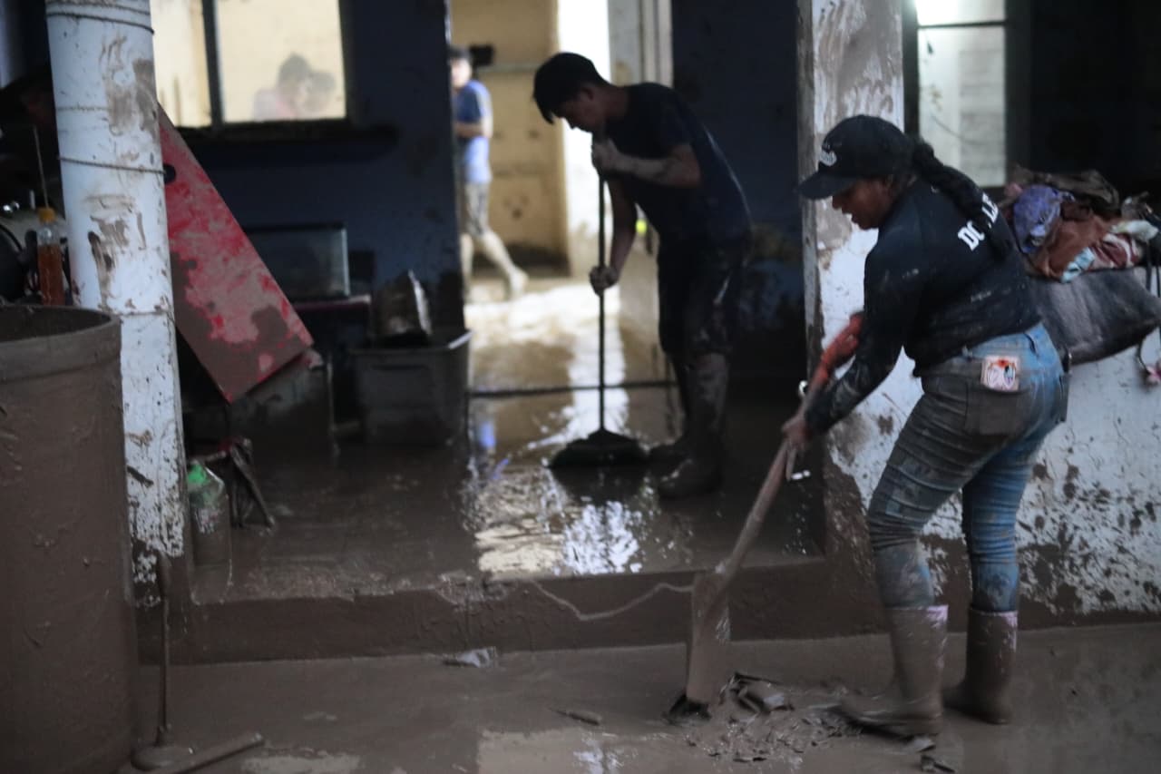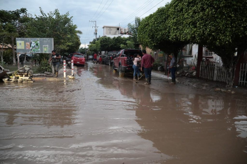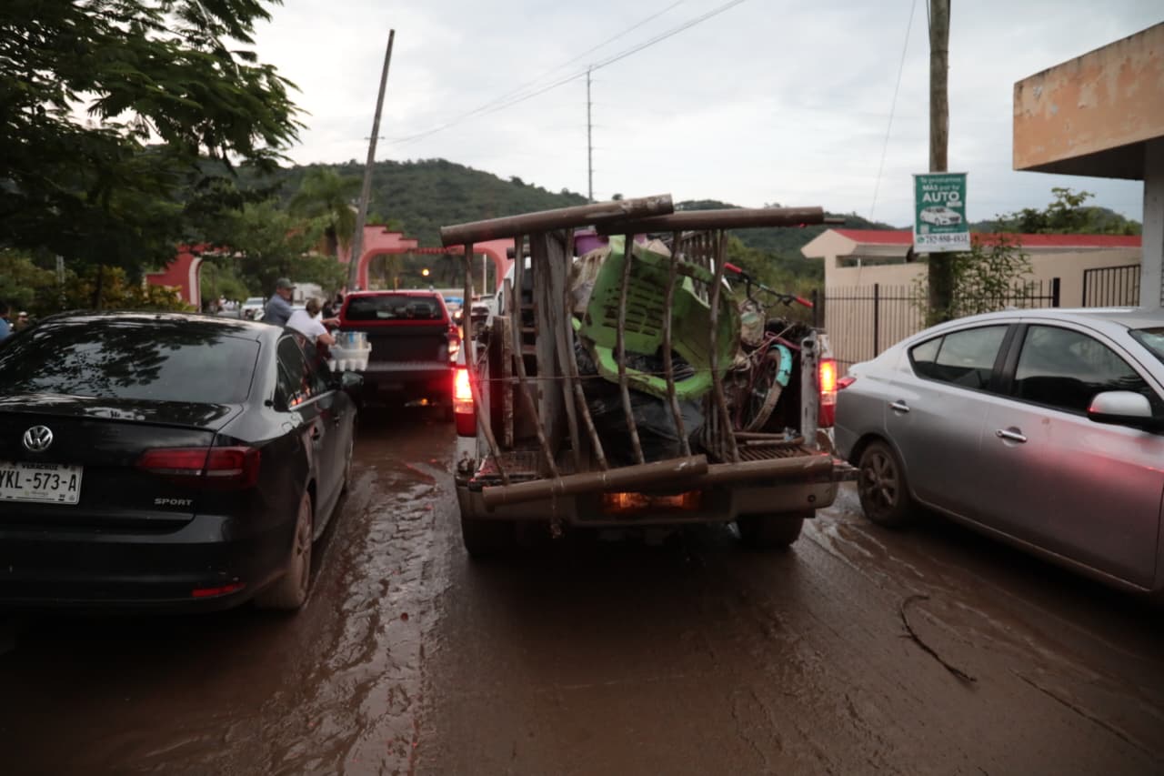 La Comisión Nacional y Estatal del Agua apoyaron con maquinaria y pipas para suministrar agua a la población y en los trabajos de limpieza. El cese de las lluvias y el descenso de los ríos permitió avanzar en estas tareas durante este sábado.