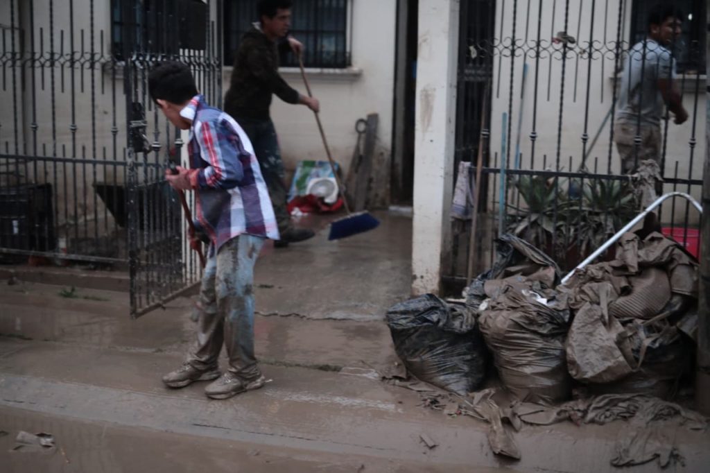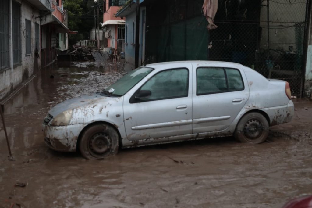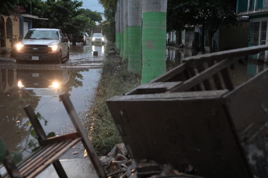 En el bulevar Lázaro Cárdenas, como en colonias de la periferia, la población participó en el retiro de escombros, enseres y muebles que horas antes habían quedado bajo el agua y agradeció la ayuda recibida para limpiar viviendas, comercios y templos.