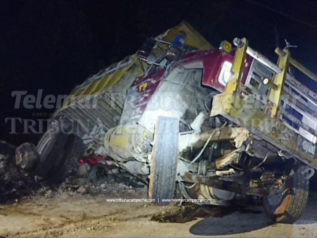 The post CAE VOLQUETE EN UNA ZANJA CUANDO DESCARGABA PIEDRAS; LO RESCATAN CON UNA RETROEXCAVADORA first appeared on Tribuna Campeche.