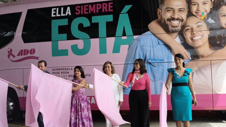 Córdoba, Ver.- En este mes de la lucha contra el cáncer de mama, la línea de autobuses ADO dio inició a la Caravana Rosa, que tiene por objetivo crear conciencia sobre la importancia de la detección temprana y la prevención de esta enfermedad, dando pases gratuitos para realizarse la mastografía.