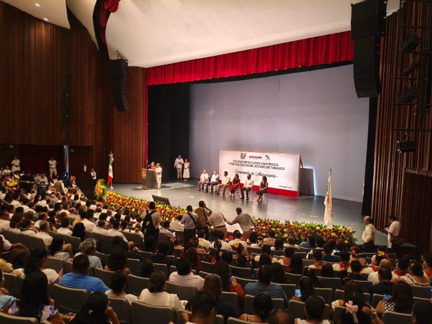 El Colegio de Estudios Científicos y Tecnológicos del Estado de Tabasco (CECyTE – Tabasco) celebró su 32 aniversario con ajustes al modelo educativo, la apertura de nuevas carreras y el compromiso del Gobierno Federal de continuar el fortalecimiento de la educación tecnológica.