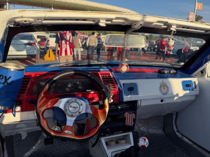 “Lo empecé a transformar, y, pues, me fue quedando muy bonito. Antes estaba tapado y después quise tener un carro convertible, y le quité el techo y todo eso. Hace poquito, hace dos años, o año y medio, lo agrandé para ponerle una hielera y que quepan más amigos, porque cuando venimos al estadio, siempre somos seis o siete personas”, señaló el señor Alejandro.