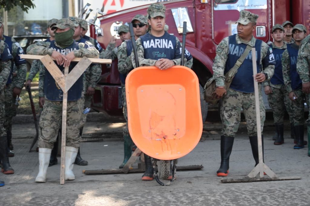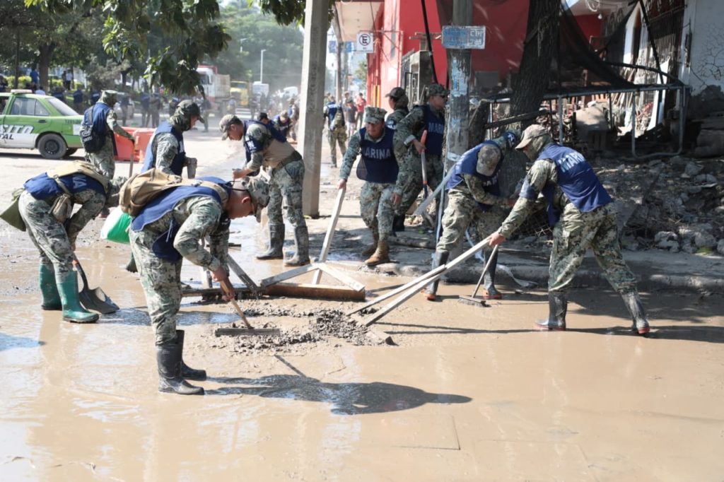“La Presidenta no solo vino, trajo prácticamente a todo el gobierno federal, y gracias a eso hoy tenemos avances muy importantes, con el Ejército Mexicano, la Secretaría de Marina, la Coordinación Nacional de Protección Civil, la Secretaría de Bienestar y la Comisión Nacional del Agua hemos logrado limpiar más del 65 por ciento del lodo y los desechos en Poza Rica”.