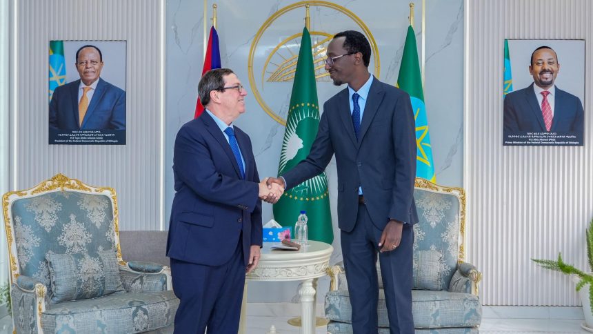 Nairobi/El ministro de Relaciones Exteriores de Cuba, Bruno Rodríguez, se reunió este lunes con el canciller de Etiopía, Gedion Timothewos, en su segunda gira por África, durante la cual instó a profundizar los lazos económicos entre ambos países.