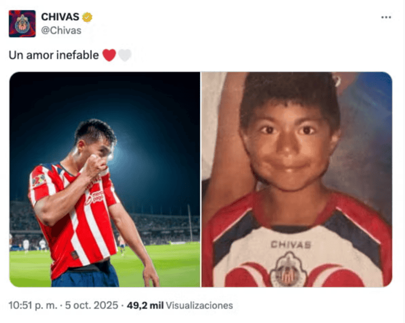 Después del partido, la cuenta oficial de Chivas compartió una imagen del futbolista cuando era niño vistiendo la camiseta del club, acompañada de un mensaje que destacaba su conexión con el equipo desde pequeño, asegurando que Aguirre siempre ha sido un “Chivahermano”.