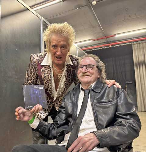 ▲ Antes de su concierto en Buenos Aires, el británico Rod Stewart tuvo la visita del músico argentino Charly García, quien le obsequió un ejemplar del sencillo In the City, título que grabó recientemente junto con Sting.Foto tomada de la red social X