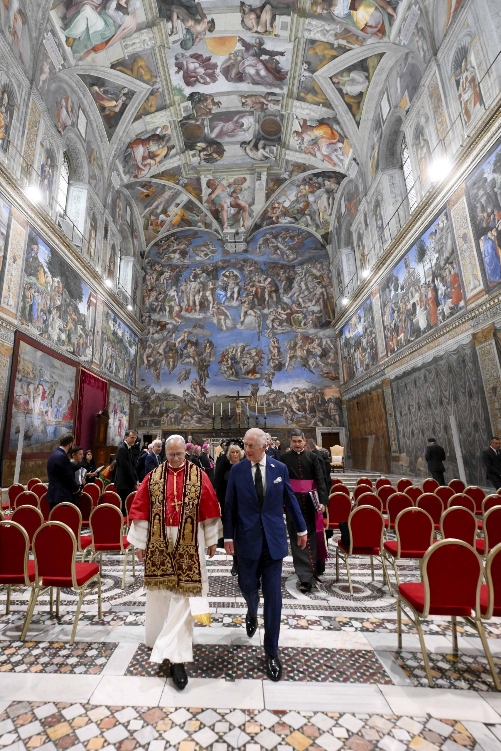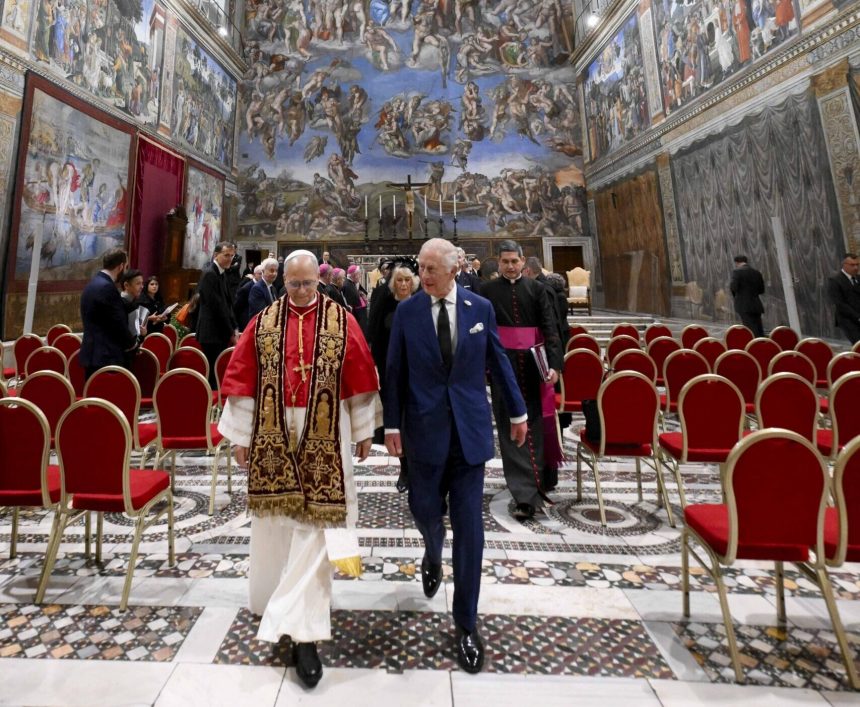 El momento más emotivo de la visita ocurrió en la Capilla Sixtina, donde resonaron las voces combinadas del Coro de la Capilla Sixtina y el Coro de San Jorge de Windsor, entonando himnos en latín e inglés. Bajo la mirada eterna del “Juicio Final” de Miguel Ángel, el Papa y el Rey elevaron una oración conjunta por la paz mundial y la reconciliación entre los pueblos cristianos. Fue la primera plegaria compartida entre un pontífice y un monarca británico desde la Reforma inglesa del siglo XVI.