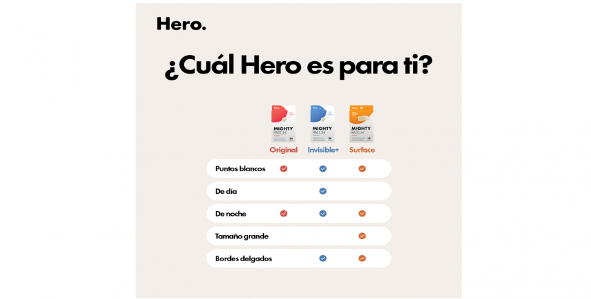 A veces, un granito puede sentirse como una pequeña herida: duele, molesta y lo único que queremos es que desaparezca rápido. Así como ponemos una curita sobre una raspadura para protegerla y ayudarla a sanar, los Hero Patch actúan de la misma forma sobre el acné.