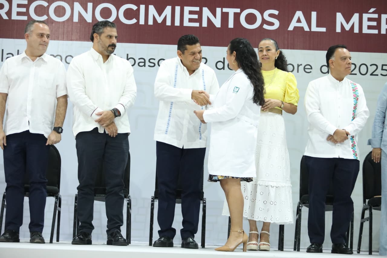 En la jornada dedicada a reconocer la vocación, entrega y compromiso de quienes consagran su vida al cuidado de los demás, el Gobernador Javier May también hizo entrega de 25 reconocimientos a médicas y médicos de diferentes instituciones de salud, por su desempeño sobresaliente. “Su labor cotidiana en hospitales, clínicas y centros de salud fortalece día con día nuestro sistema de atención”, puntualizó.