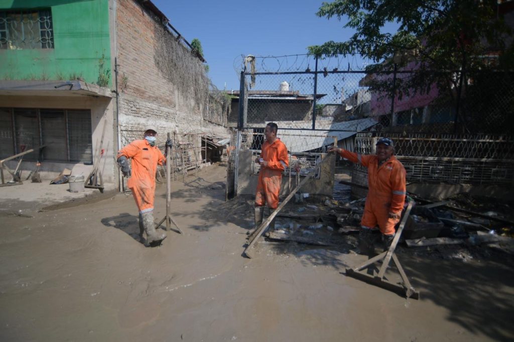 De manera simultánea, se ejecuta la limpieza de calles, desazolve del sistema de alcantarillado y el suministro de combustible para mantener operativa la maquinaria pesada; además, se apoya con el traslado de kits de limpieza, despensas y herramientas a las brigadas y comunidades afectadas.