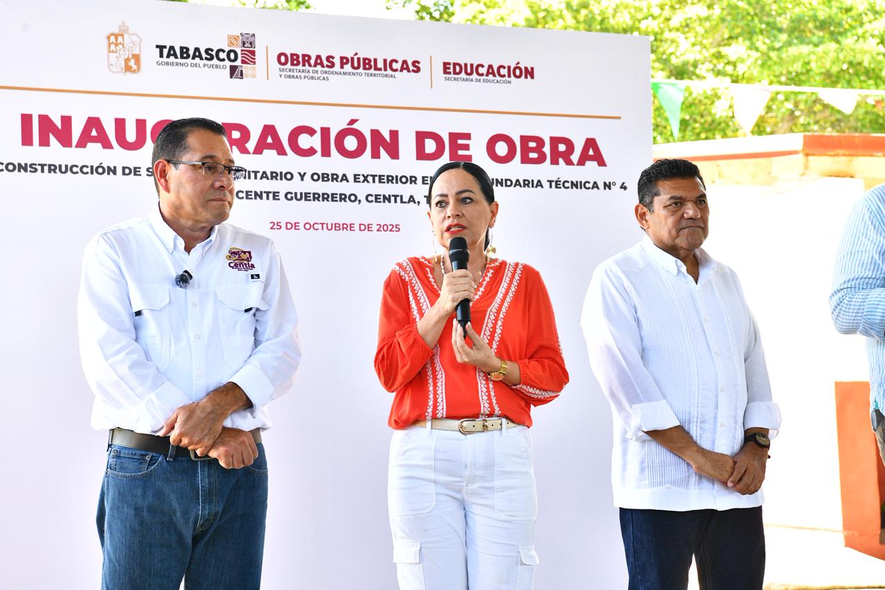 La mejor inversión que podemos hacer es en la educación de nuestros estudiantes, porque en ellos está depositada la confianza para llevar a un mejor futuro a Tabasco y a México, subrayó el Gobernador Javier May Rodríguez al inaugurar un equipo de servicios sanitarios en la Escuela Secundaria Técnica número 4, ubicada en Villa Vicente Guerrero, en el municipio de Centla, en la que se invirtieron más de 1.5 millones de pesos, en beneficio de 437 estudiantes, docentes y administrativos.