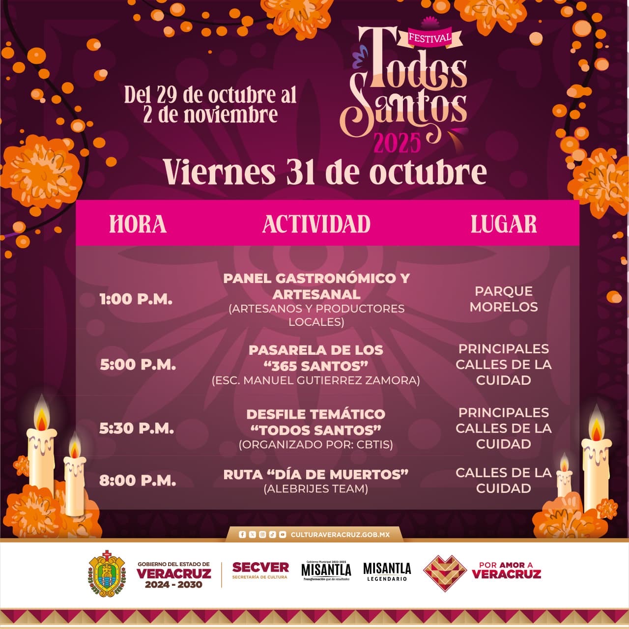 Esta actividad se realiza en el marco del Festival de Todos Santos 2025, que tendrá lugar del miércoles 29 de octubre al domingo 02 de noviembre.
