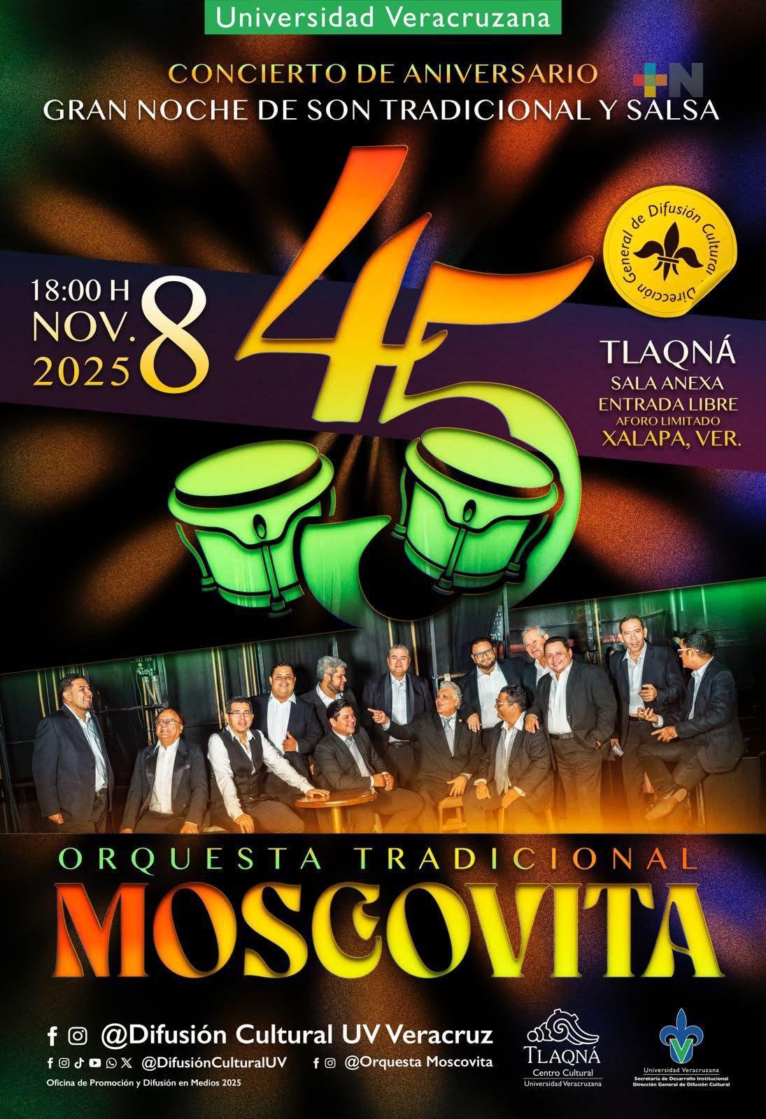 Veracruz, Ver.- La Orquesta Tradicional Moscovita de la Universidad Veracruzana celebra sus 45 años de trayectoria con dos conciertos gratuitos en Xalapa y Veracruz. Un homenaje al legado afroantillano que sigue marcando el pulso cultural del puerto.