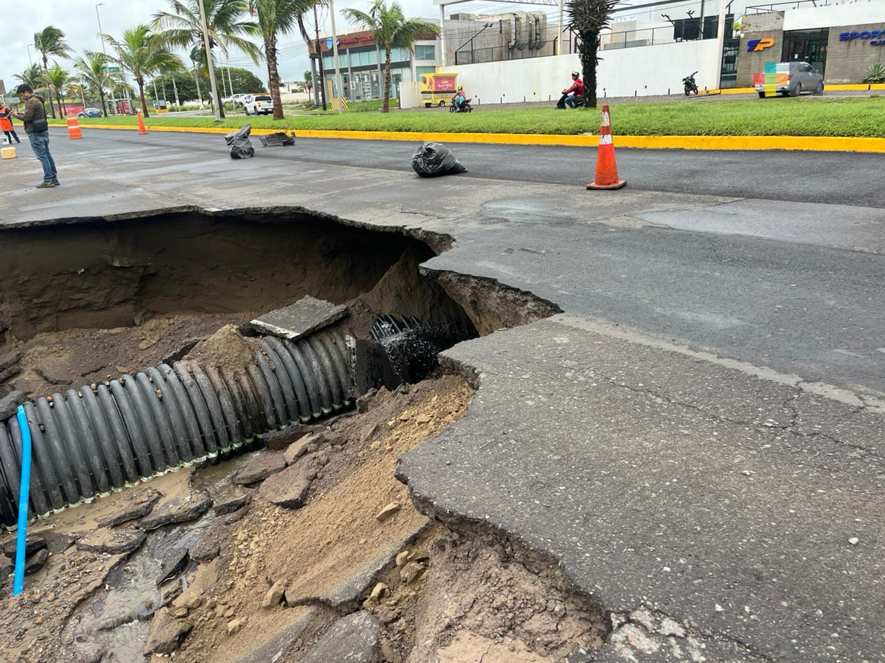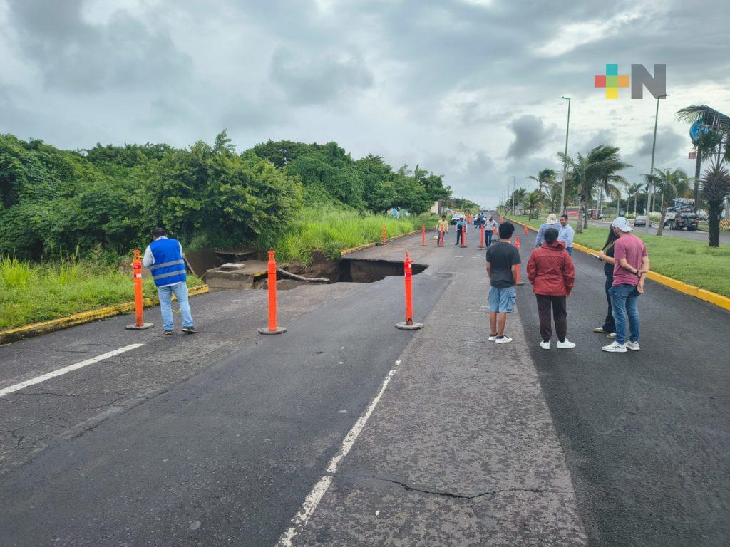 Alvarado, Ver.- Sobre la carretera Antón Lizardo-Boca del Río, en el municipio de Alvarado, se formó un socavón a causa de la intensa lluvia que se registró durante la madrugada de este miércoles.