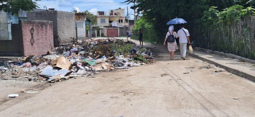 Al costado de la panadería de la barriada de Pueblo Nuevo y muy próximos a la secundaria y preuniversitario Alberto Sosa González, los desperdicios llevan semanas acumulándose ante la mirada preocupada de los vecinos y el festín de las auras tiñosas. A escasos metros también de un círculo infantil, el basurero apenas deja ya transitar por la calle y sus hedores obligan a apurar el paso cuando se camina cerca. “¡Que Díaz-Canel mande el batallón de Tropas Especiales!”, decía malhumorado un vendedor de pan que intentaba pasar con su bicicleta, cargada con la mercancía, por el estrecho espacio entre las inmundicias y la acera.
