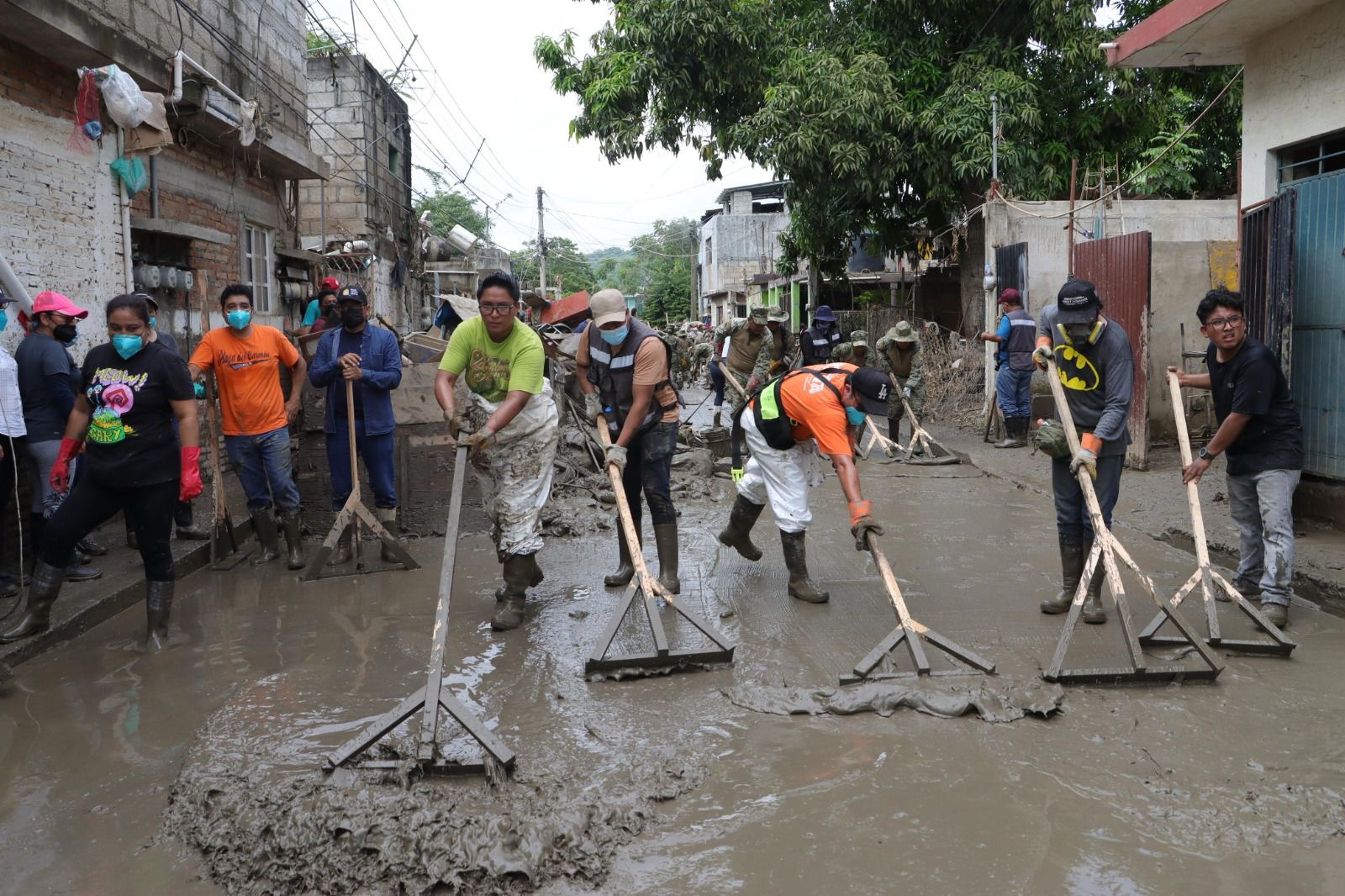 Xalapa, Ver .- Por segunda semana consecutiva, la Secretaría de Educación de Veracruz (SEV) mantiene activas sus brigadas de apoyo en Poza Rica, donde más de mil 300 trabajadores realizan labores de limpieza y asistencia a familias afectadas por las recientes inundaciones en las colonias Ignacio de la Llave y Las Granjas.