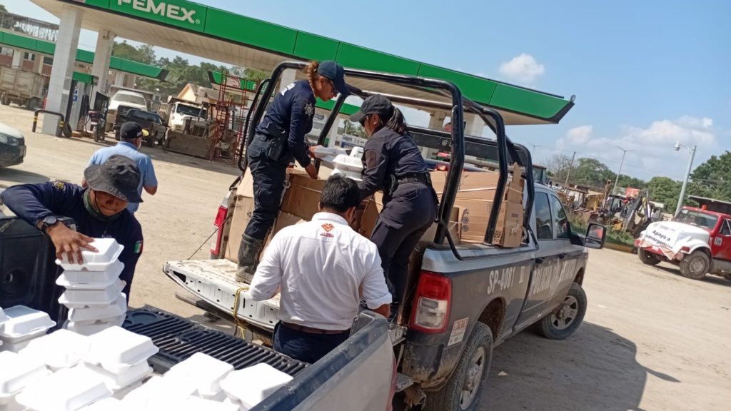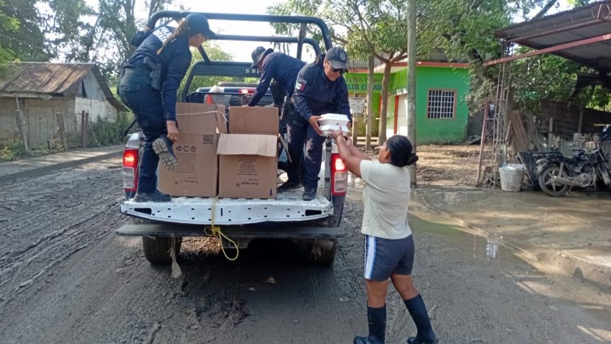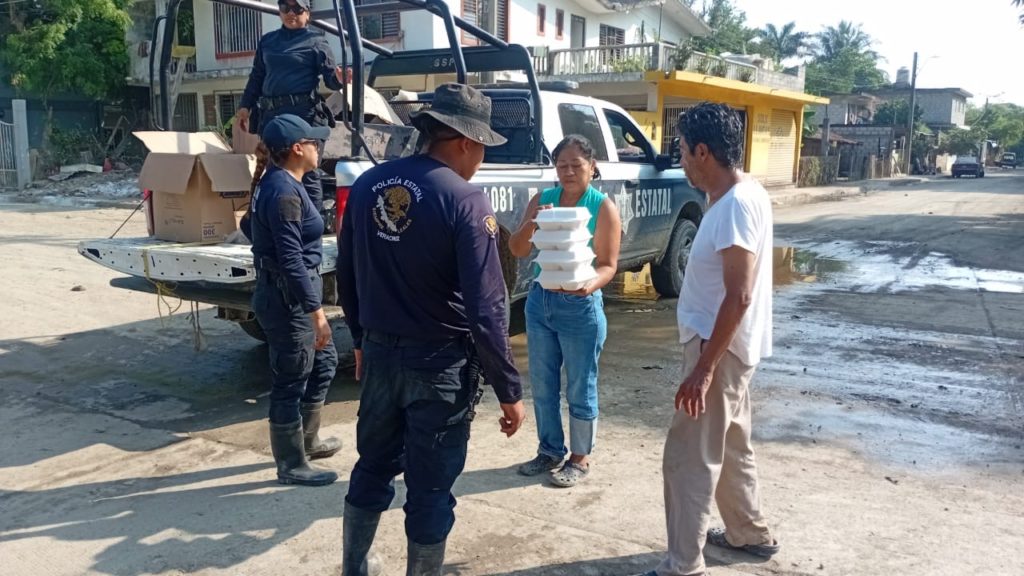 Poza Rica, Ver.- En las últimas 24 horas, a través del Plan Tajín de la Secretaría de Seguridad Pública (SSP), se han distribuido 2 mil 500 raciones de comida caliente y 621 paquetes alimentarios a familias damnificadas por la vaguada y la depresión tropical 90E en la zona norte del estado.