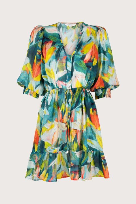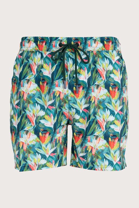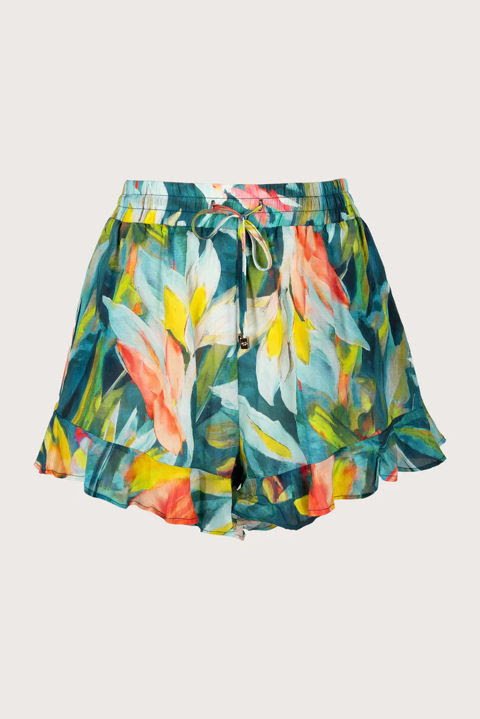 Florales multicolor que se estructuran en un corsetero femenino y se encuentran con el short Versalles para tu pareja en el mismo print.