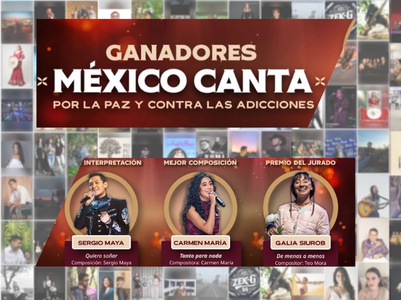 México Canta por la Paz y contra las Adicciones ya tiene ganadores: Sergio Maya, Carmen María González y Galia Siurob, quienes demostraron que cantar también puede ser un acto de vida y unidad.
