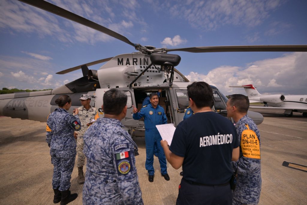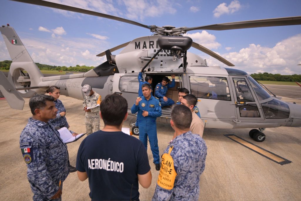 Asimismo, continúa el puente aéreo hacia Texcatepec, Zacualpan, Ilamatlán, Zontecomatlán e Ixhuatlán de Madero; al respecto la Mandataria informó que actualmente 12 aeronaves participan en estas operaciones, gracias a la coordinación de las secretarías de Marina, Defensa Nacional, el Gobierno del Estado, Telmex, Pemex y el Gobierno de Tamaulipas.