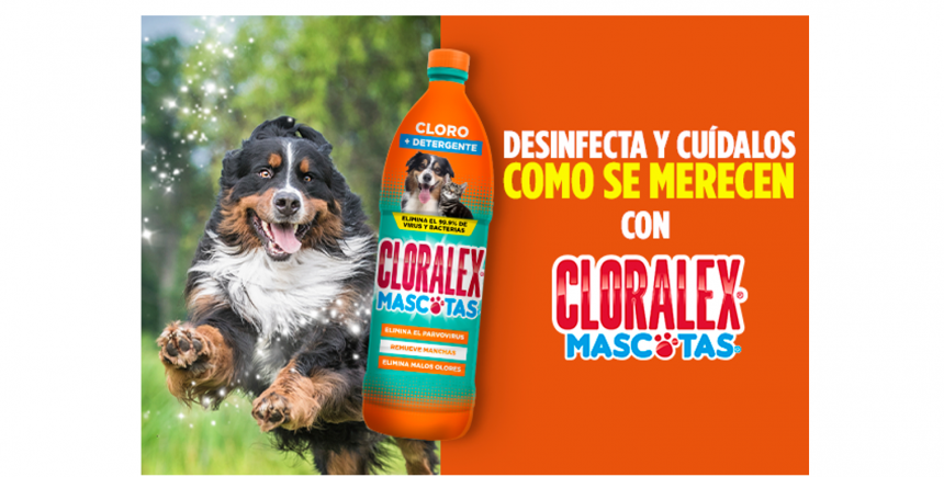 Pensando en esta necesidad, Cloralex® Mascotas®, es el aliado perfecto, ya que con una fórmula especial de cloro, detergente y aroma cítrico, elimina de superficies un 99.9% de virus como el Parvovirus canino y bacterias como Escherichia coli y