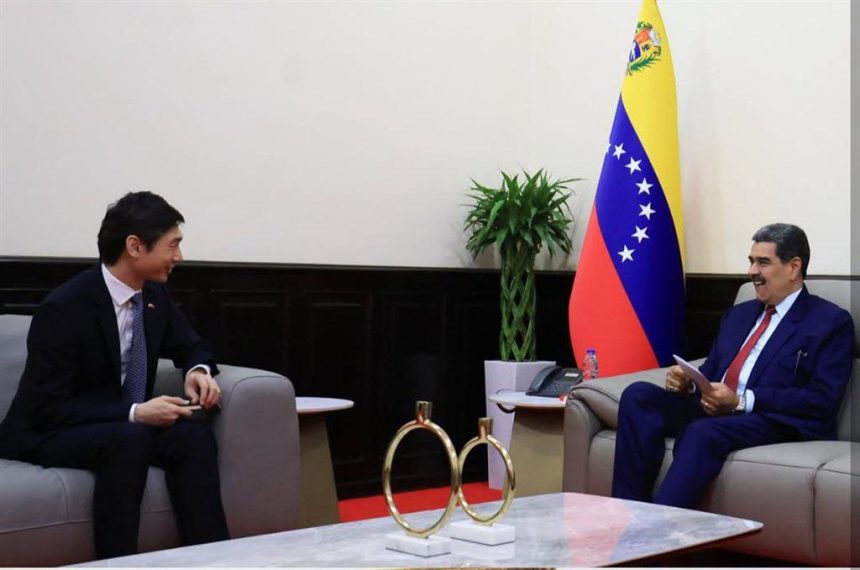 Maduro dio la bienvenida al plenipotenciario asiático en el Palacio de Miraflores, sede de Gobierno, según imágenes divulgadas.