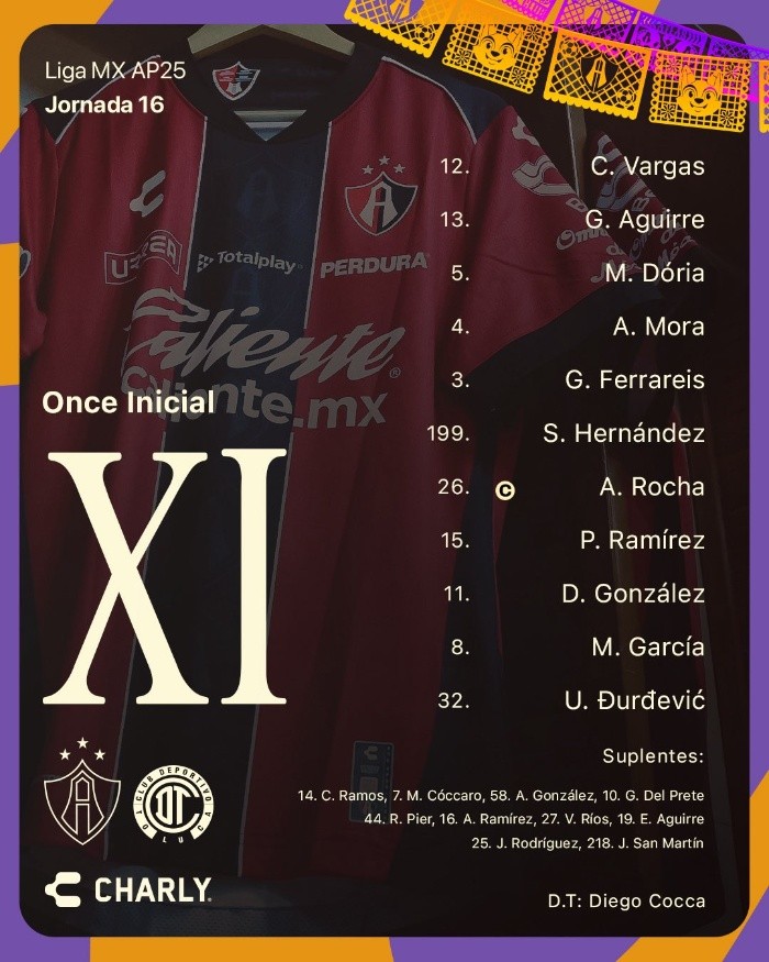 El encuentro entre Atlas y Toluca se disputará este sábado 1 de noviembre a las 17:00 horas, tiempo del centro de México, en la cancha del Estadio Jalisco. Se espera un enfrentamiento intenso, con dos equipos que llegan con diferentes necesidades, pero con la misma urgencia de sumar.