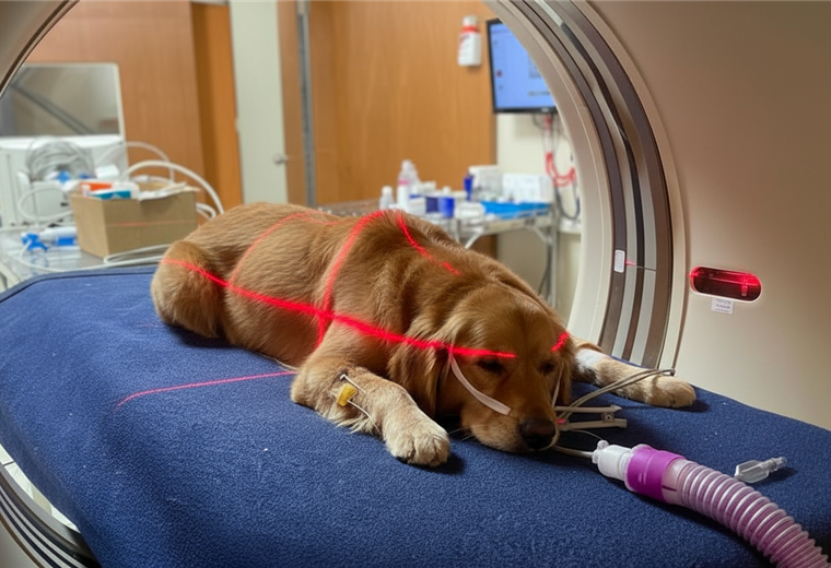Un animal con cáncer de mamá regularmente es sometido a radioterapia.