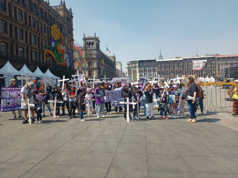 CDMX: Familiares de víctimas de feminicidio y desaparición se manifiestan en el Zócalo para exigir justicia