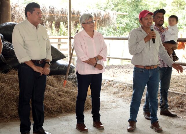 Tras puntualizar que “hoy estamos también en un momento importante”, invitó a los 73 beneficiarios y beneficiarias del programa a no perder el tiempo. Mientras mencionaba a los técnicos que ayudarán a que las novillonas se carguen a tiempo con el fin de que cuando menos se preñe la mitad de las entregadas, una vaquilla en el corral de junto tumbó a otra y su caída sonó fuerte.