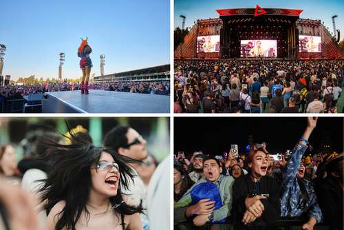 En otro de los escenarios, el maquillaje ochentero de las asistentes, en claro reflejo mimético con la estrella de la noche, Chappell Roan, además de los vestuarios chillantes en colores rosas, amarilos y fosforecentes chín-ga-me-la-re-ti-na, también esperan la apertura con la actuación de los Cutls, la voz de Madeline Follin, frontgirl de la banda indie pop estadunidense, refrendó su gran fama en México con lo más granado de su discografía que, por supuesto, incluyó Go Outside, Bad Things, Never Saw the Point y la lacerante You Know What I Mean y Abducted.