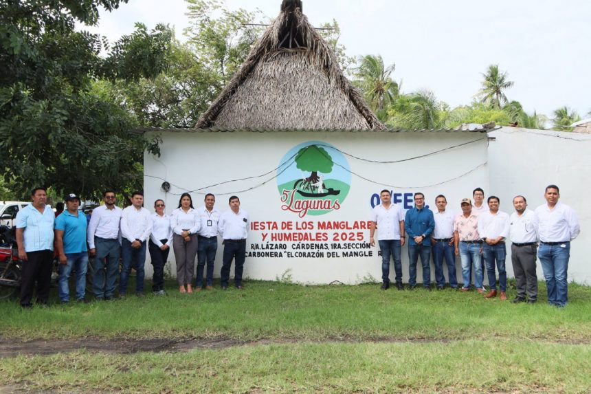 El alcalde Ovidio Peralta Suárez encabezó este jueves en Cinco Lagunas el lanzamiento de la Estrategia Nacional de Limpieza y Conservación de Playas y Costas de México 2025-2030, en cuyo marco fue instalado el Comité de Vigilancia Ambiental Participativa de esa zona.