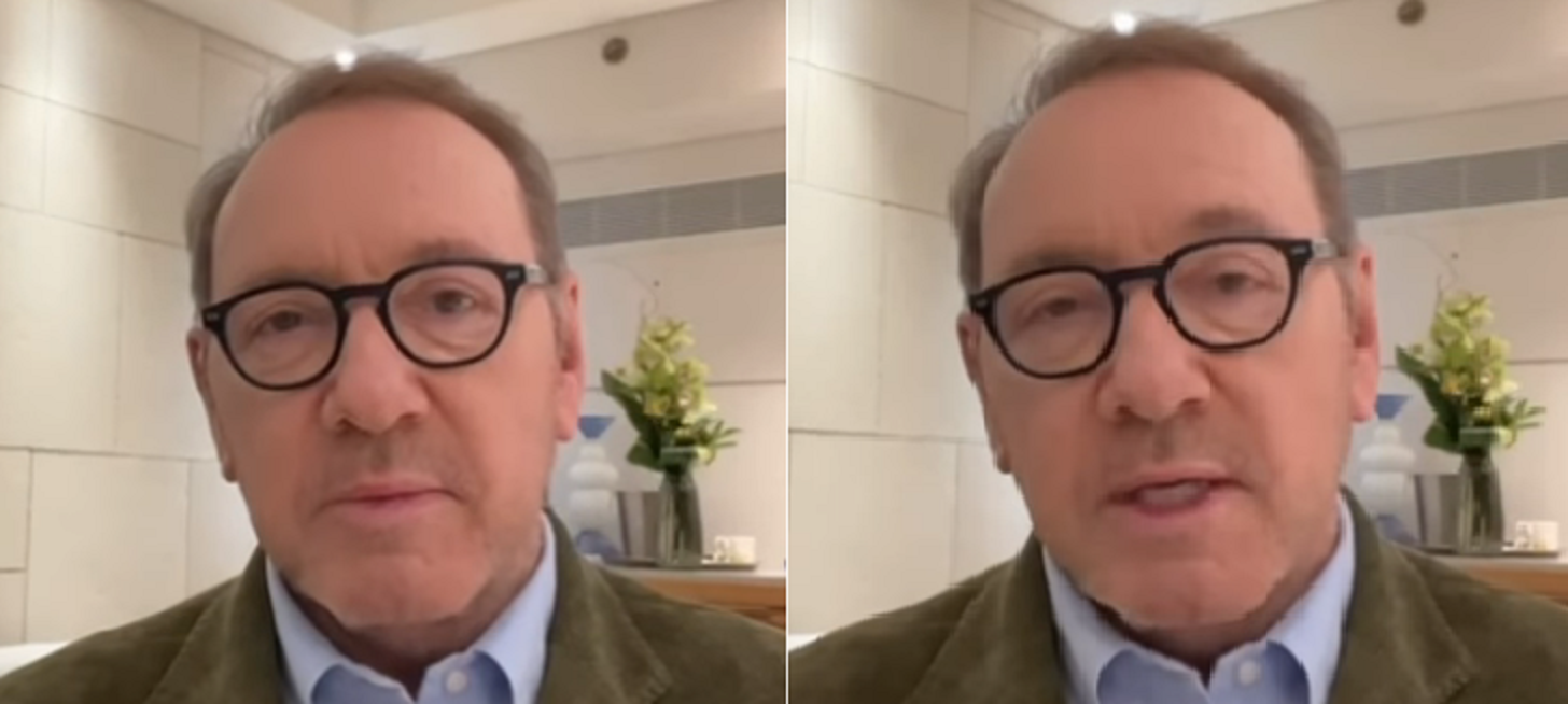 Spacey grabó el vídeo desde un lugar neutro —probablemente un hotel, con fondo blanco y luz natural— y habló directamente a la cámara con tono sereno pero firme durante poco más de dos minutos: