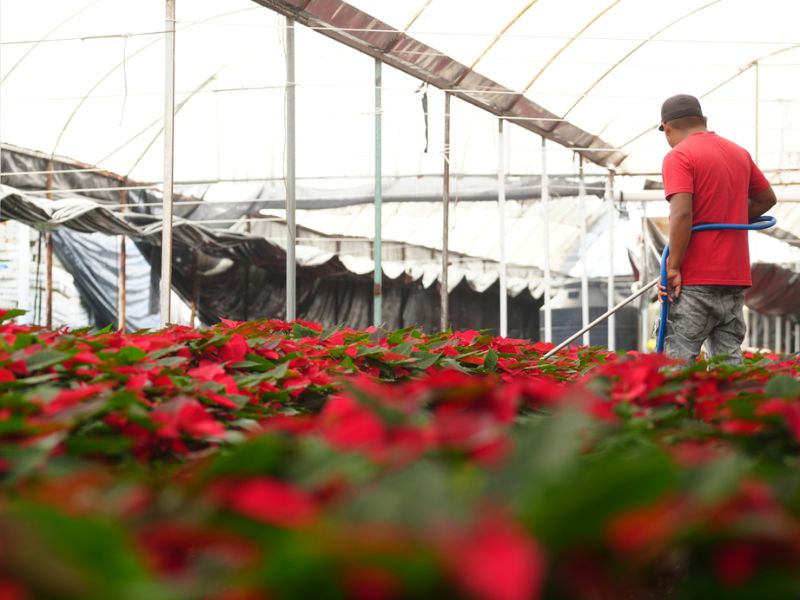 Para esta temporada, la oferta va desde la clásica Nochebuena roja hasta variedades blancas, rosas, jaspeadas y crema dorada, cultivadas con técnicas especializadas impulsadas por Altépetl Bienestar.