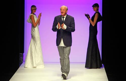 ▲ Paul Costelloe tras presentar sus diseños en la Semana de la Moda de Londres en 2009.Foto Ap