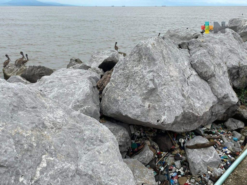 Coatzacoalcos, Ver.- Las escolleras de Coatzacoalcos, uno de los puntos más visitados del puerto, presentan un notable problema de basura entre las rocas. Visitantes dejan desechos como vasos de esquites, envolturas de comida y plásticos, lo que ha generado afectaciones en la zona.