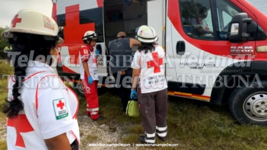 Carmen.- A la altura del kilómetro 11 de la carretera Carmen-Puerto Real, pasajero y guiador resultan lesionados de un mototaxi o pochitoque resultaron lesionados tras ser impactados por una camioneta, cuyo conductor se dio a la fuga.