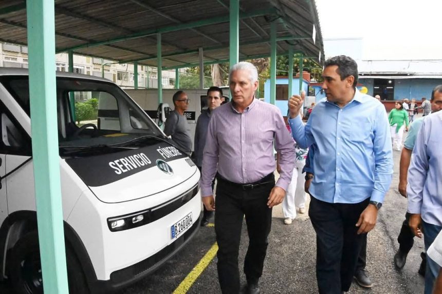 Vinculado o no a ese anuncio, este miércoles Díaz-Canel visitó la empresa SERVI AXESS, una mipyme estatal de la Empresa Comercializadora AXESS, integrada en el Ministerio del Transporte, donde estaban los 15 vehículos eléctricos que pronto formarán parte de la flota habanera para transportar fallecidos. El nuevo servicio necrológico “incluye un esquema de abastecimiento energético mixto, mediante paneles solares para respaldo de carga y alimentación convencional en puntos habilitados, buscando garantizar continuidad operativa aun frente a interrupciones”, informó la prensa.