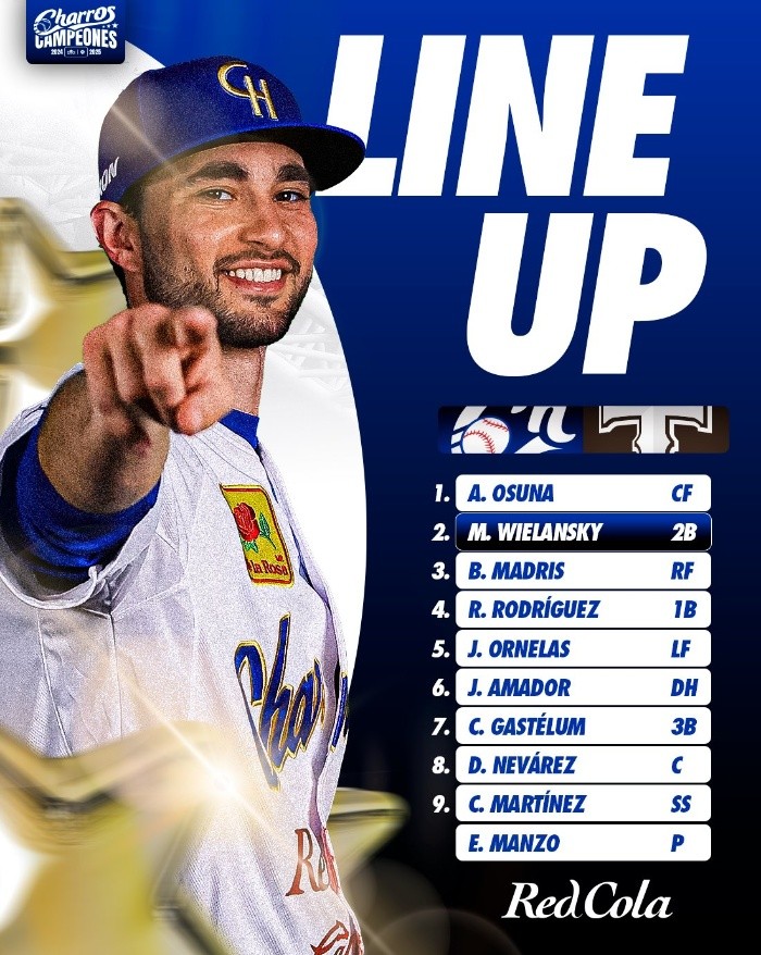 Charros hace cambio de pitcher: Alemao Hernández sustituye a Edgar Manzo. Ramón Mendoza conecta sencillo por jardín derecho. River Town saca sencillo, Mendoza avanza a segunda. Edgar Lugo conecta otro sencillo para que Mendoza anote y Town llegue a segunda. Jesús Fabela saca roletazo y Charros consigue doble matanza. Agustín Ruiz batea roletazo y es dominado en primera.