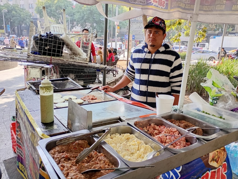 Un poco más arriba, en el centro, a un lado del Palacio de Bellas Artes, se ubican decenas de puestos de comida instalados por migrantes de diversas nacionalidades, quienes se quedaron esperando la cita por la plataforma CBP One y después del 20 de enero no pudieron cruzar de forma regular a los Estados Unidos.