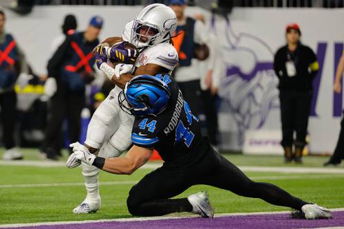 Por los Leones, su mariscal de campo Jared Goff conectó un pase a las diagonales con su receptor Isaac TeSlaa y sufrió dos intercepciones. Harrison Smith, el veterano esquinero en su decimocuarta temporada, aportó uno de los dos robos de balón y una de las cinco capturas a Goff por parte de Mi-nnesota (8-8), que ganó su cuarto duelo consecutivo.