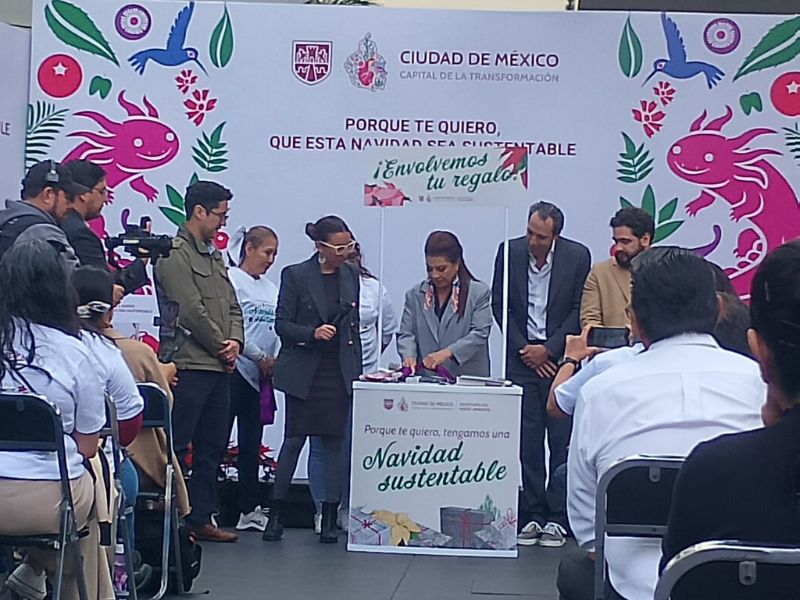 El Gobierno de la Ciudad de México, encabezado por la jefa de Gobierno, Clara Brugada, y la Secretaría de Medio Ambiente presentaron la iniciativa para instalar módulos de envoltura sustentable para regalos en plazas comerciales, titulada “Porque te quiero, que esta Navidad sea sustentable”.